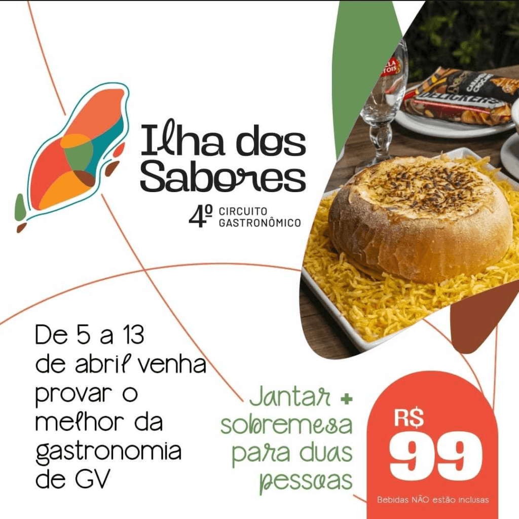 De 5 a 13 de abril, numa realização do Projeto na Ilha, acontece a quarta edição do Circuito Gastronômico Ilha dos Sabores. Serão 11 dias consagrados à boa mesa e à música valadarense – tudo com um preço camarada em restaurantes e bares localizados em dos bairros mais charmosos de Valadares.