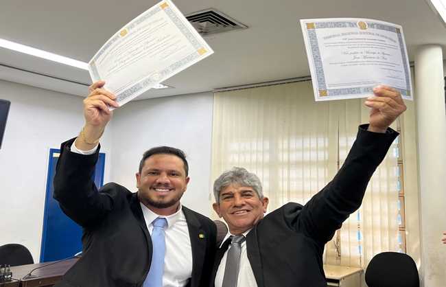 O prefeito reeleito Rafael França e o vice-prefeito Lodim de Era Nova, ao lado dos vereadores eleitos, foram diplomados na tarde desta terça-feira (17), em cerimônia realizada em Governador Valadares.