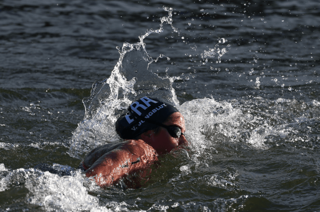 Ela ainda tentou acelerar para buscar a medalha, sobretudo quando nadava a favor da correnteza do Rio Sena, tirou seis segundos de diferença, mas não foi o suficiente para encostar.