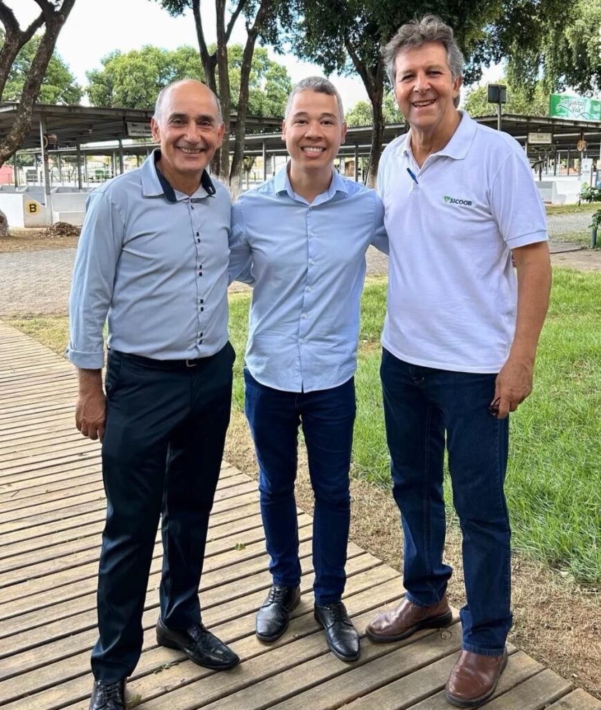 Inspetor da Polícia Civil, Robson Mourão, entre o presidente do Sicoob Crediriodoce, Cantídio Ferreira e seu diretor executivo Silas Dias Costa Jr.
