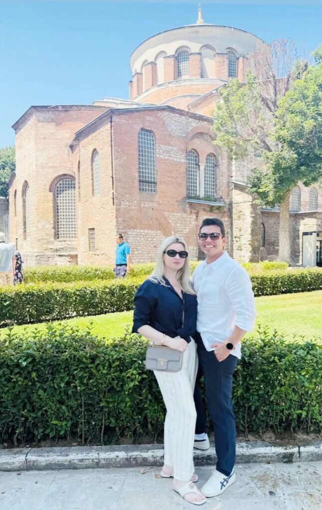 Empresário Sandro Heringer e Kamille Tolomelli. Casal está em Osaka, no Japão, onde acontece a Expo 2025.