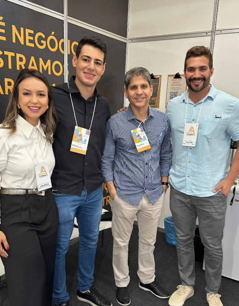 Aconteceu na última quinta-feira, a abertura da feira MinasCon. Na foto, a engenheira Laise Gobira, engenheiro Marçal, engenheiro Rodrigo Carvalho, e Caio Anjo.