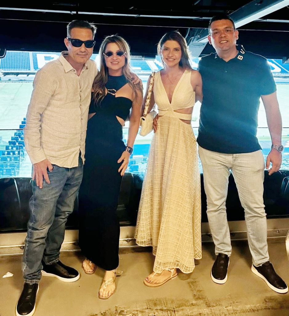 André Diniz com a esposa Érika, e Célio Murta Lima, com a esposa Mariana Coelho, visitando o Bernabéu Stadium, do Real Madrid.
