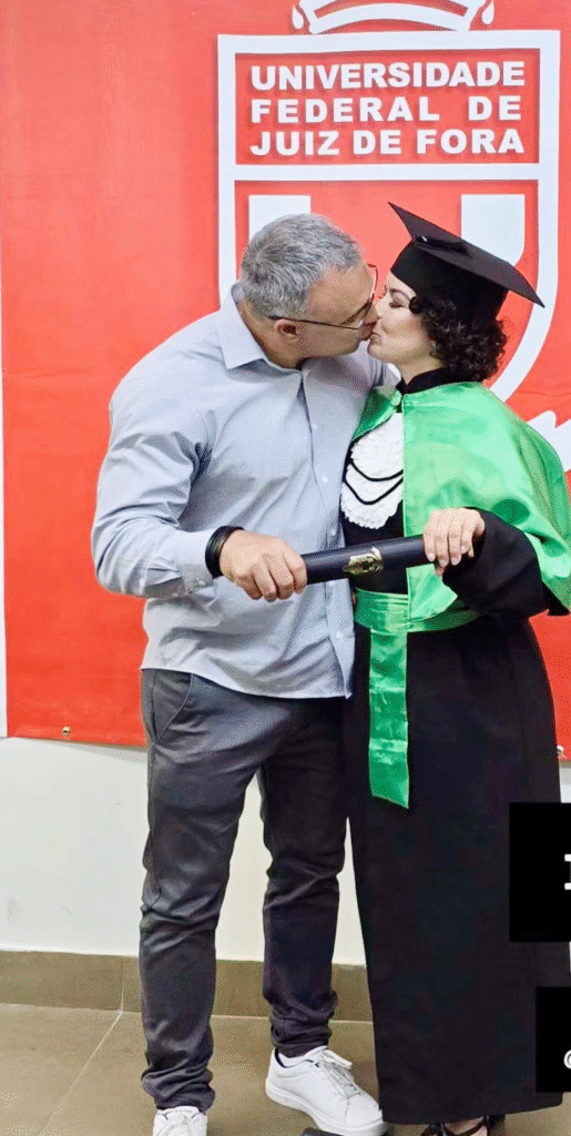 Diretor da Cooperativa, Gilmar Oliveira, com sua esposa Poliara, que acaba de se formar em Nutrição. Formou-se como a melhor aluna do Curso de Nutrição da UFJF.