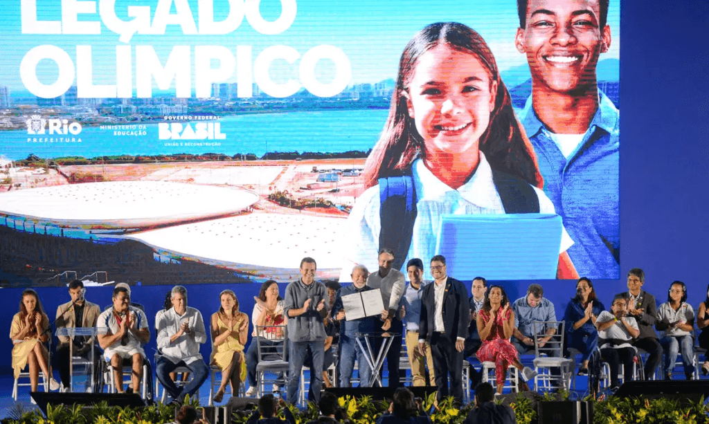 A cerimônia ocorreu no Parque Olímpico, na Barra da Tijuca, na zona oeste da capital fluminense, onde as arenas esportivas estão sendo transformadas em unidades de ensino.