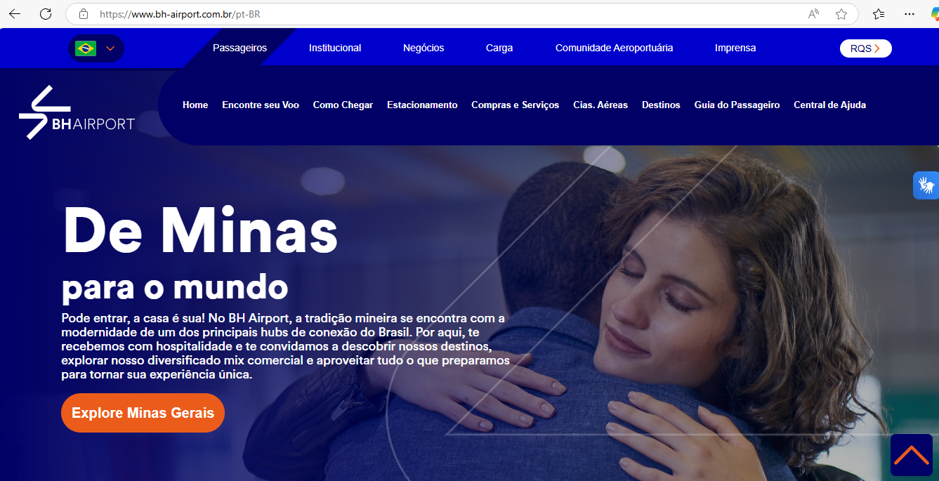 Belo Horizonte, abril de 2024 – BH Airport tem uma nova casa virtual: o aeroporto acaba de lançar um site mais moderno, mais intuitivo, mais comercial e até mais mineiro. Com o mesmo endereço eletrônico (wwww.bh-airport.com.br), o novo portal traz um layout atualizado e uma segmentação mais eficiente das informações que deixam a navegação dos usuários lógica e agradável. São seis abas diferentes: Passageiros, Institucional, Negócios, Carga, Comunidade Aeroportuária e Imprensa. Além disso, o novo site reforça o valor de mineiridade do terminal com uma página dedicada ao fomento de Minas Gerais como destino.