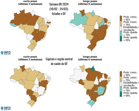 Dezoitos estados apresentam sinal de crescimento de SRAG na tendência de longo prazo: Bahia, Ceará, Distrito Federal, Espírito Santo, Goiás, Maranhão, Mato Grosso, Mato Grosso do Sul, Minas Gerais, Pará, Paraíba, Paraná, Rio Grande do Sul, Rio de Janeiro, Roraima, Santa Catarina, Sergipe e São Paulo.