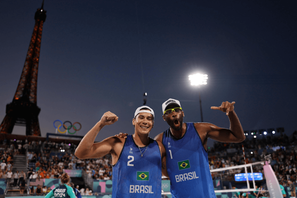 Brasileiras superaram Stam e School por 2 sets a 1, de virada, e agora se preparam para as oitavas em Paris 2024; Evandro e Arthur Lanci também fecham fase de grupos invictos após vencerem os tchecos Perusic e Schweiner por 2 sets a 0