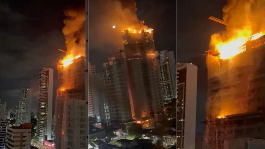 Incêndio atinge prédio em construção em Recife