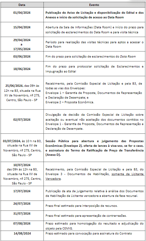 Saiba como solicitar o acesso ao Data Room consultando o Anexo B do edital do processo ou clicando aqui. Os potenciais investidores já estão tendo acesso ao Data Room.