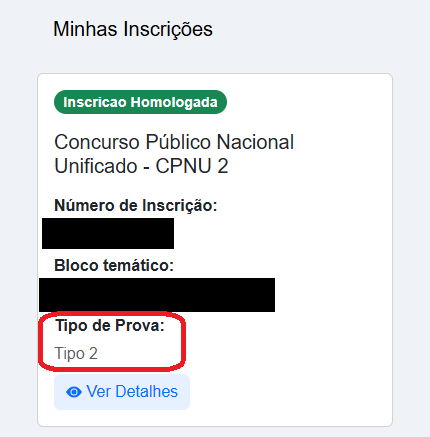 Conforme a banca, para realizar corretamente a conferência do gabarito, é preciso identificar o tipo de prova correspondente. Essa informação está disponível na "Área do Candidato".