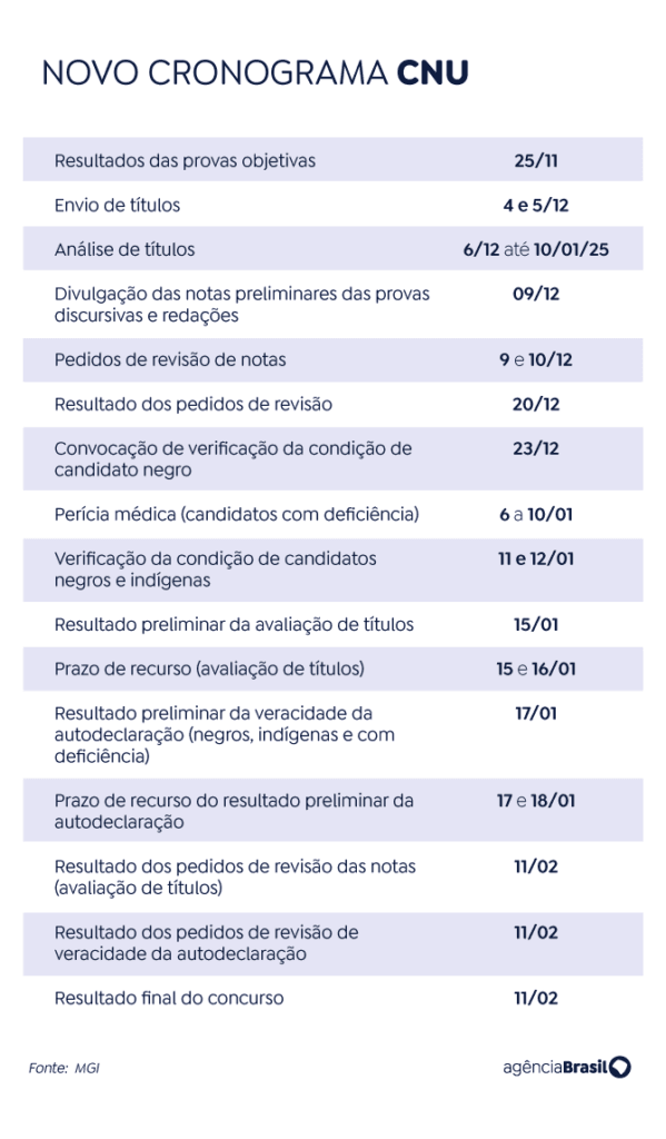 Os candidatos reintegrados ao Concurso Público Nacional Unificado (CPNU) que foram convocados para a prova de títulos acadêmicos e profissionais devem enviar os documentos até esta quinta-feira (5).![]()