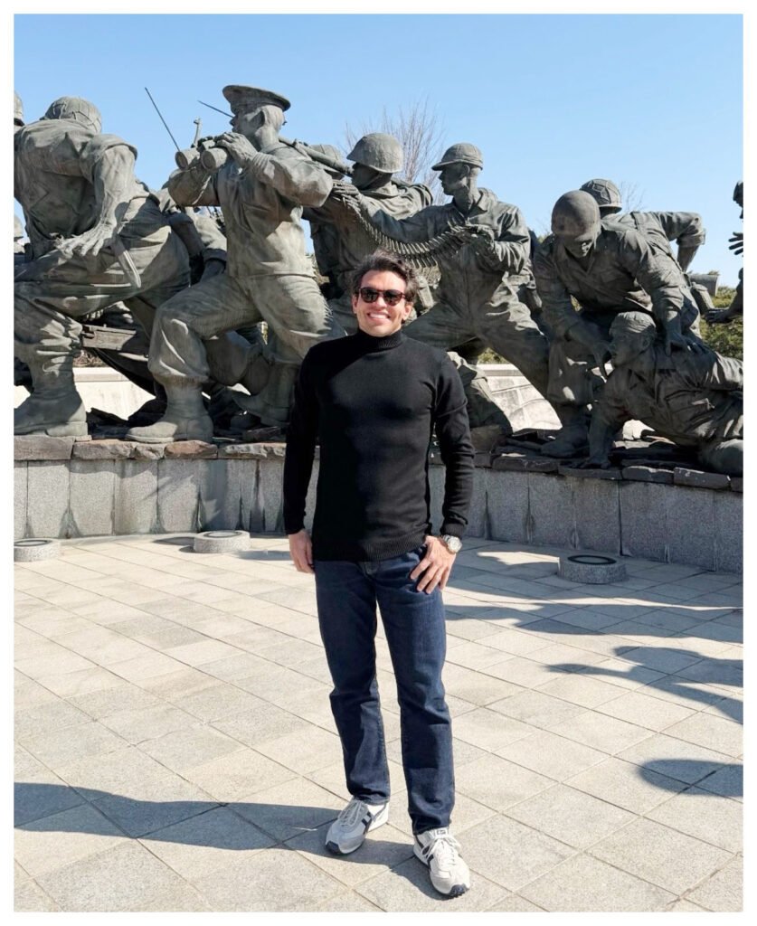 Empresário Sandro Heringer visitando o ocidente e trazendo novidades para a Fábrica de Carrocerias Heringer. Na foto está no War Memorial of Korea.