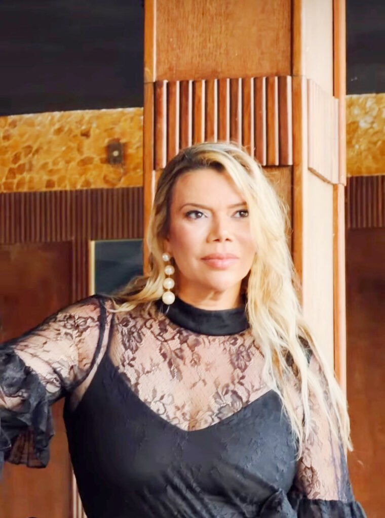 A influenciadora Mayara Galvani em um dos seus provadores. Bela, educada e sempre bem vestida.