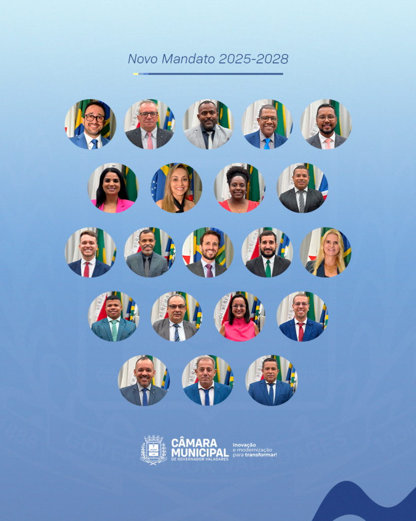 A Câmara Municipal de Governador Valadares é composta por vereadores eleitos democraticamente, que têm o dever de propor projetos de lei, debater temas de relevância pública e garantir a transparência da gestão municipal.