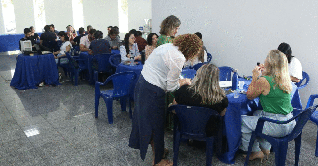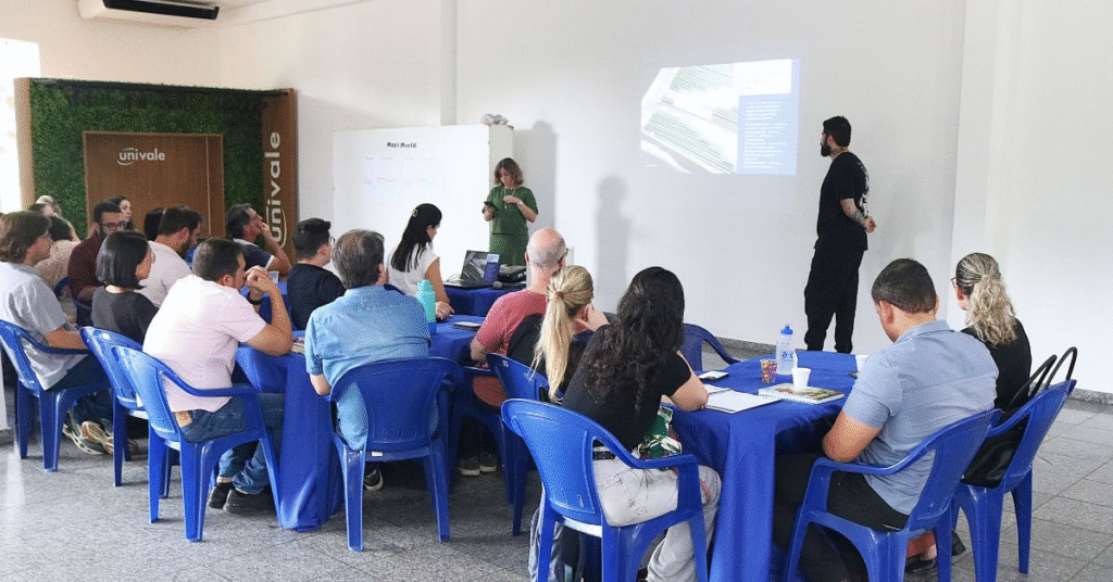 O Ciclo de Formação Regimental, capacitação em que os coordenadores de cursos de graduação da UNIVALE debatem o regimento-geral da instituição para alinhar interpretações e aplicação do documento, teve um novo encontro na segunda-feira (17), desta vez discutindo o papel dos diferentes tipos de integrantes da comunidade acadêmica: estudantes, corpo docente e Pessoal Técnico-Administrativo (PTAs).