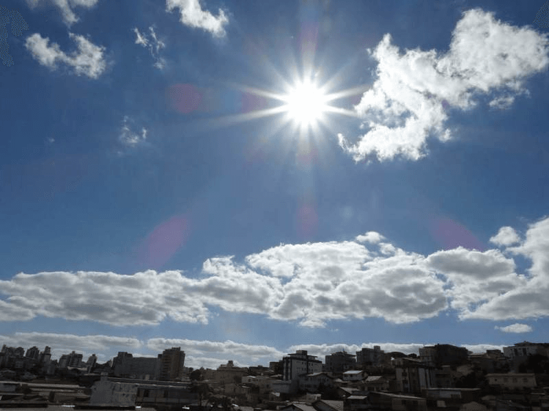 Em áreas do Norte, Noroeste, Triângulo e parte da Central Mineira, a temperatura máxima pode passar dos 40°C, principalmente à tarde.