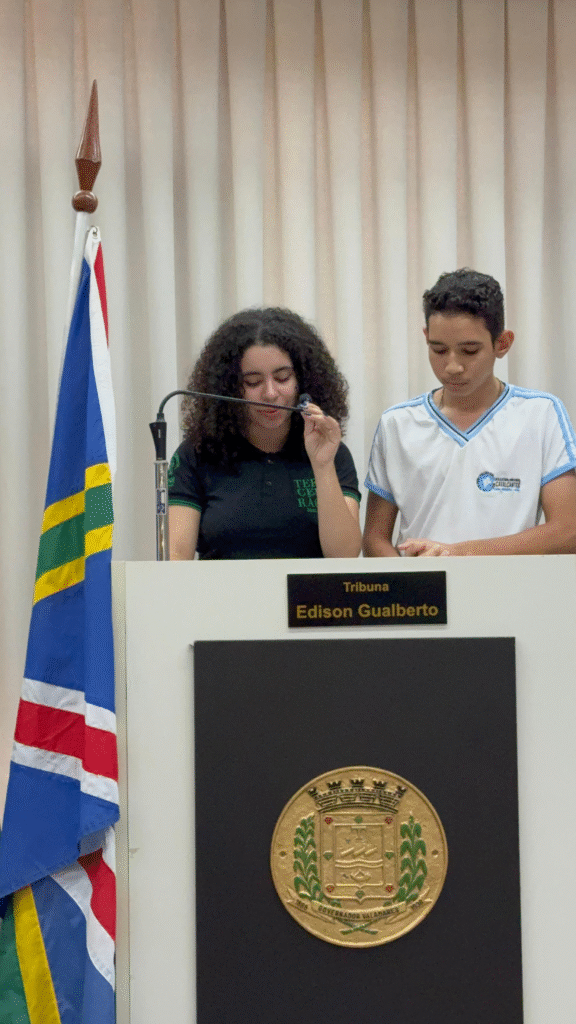 A sessão na Câmara de Valadares foi iniciada pelos estudantes Anderson Lima e Ana Clara Baeta, que destacaram o protagonismo juvenil e a importância do tema.