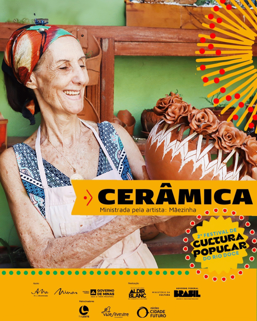 A programação de oficinas também inclui a modalidade Artes de Modelagem com a argila própria para queima, atividade apropriada para crianças e adultos - conduzida pela artista ceramista Maria Aparecida Alves Lacerda, a Mãezinha, que compartilhará com os participantes técnicas e saberes, que unem arte, tradição e identidade regional.