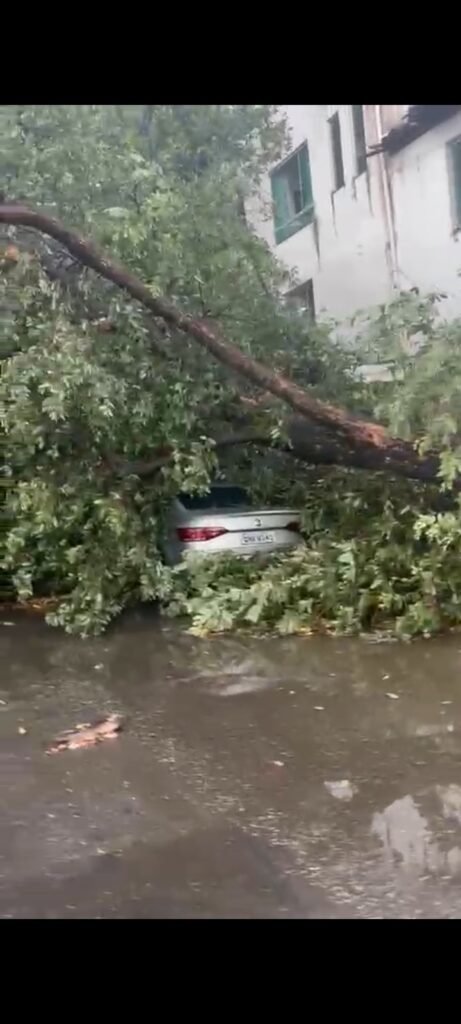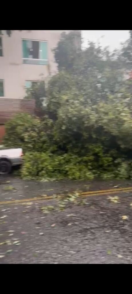 Uma árvore caiu em cima de um carro, causando estragos. Foto: Divulgação Redes Sociais