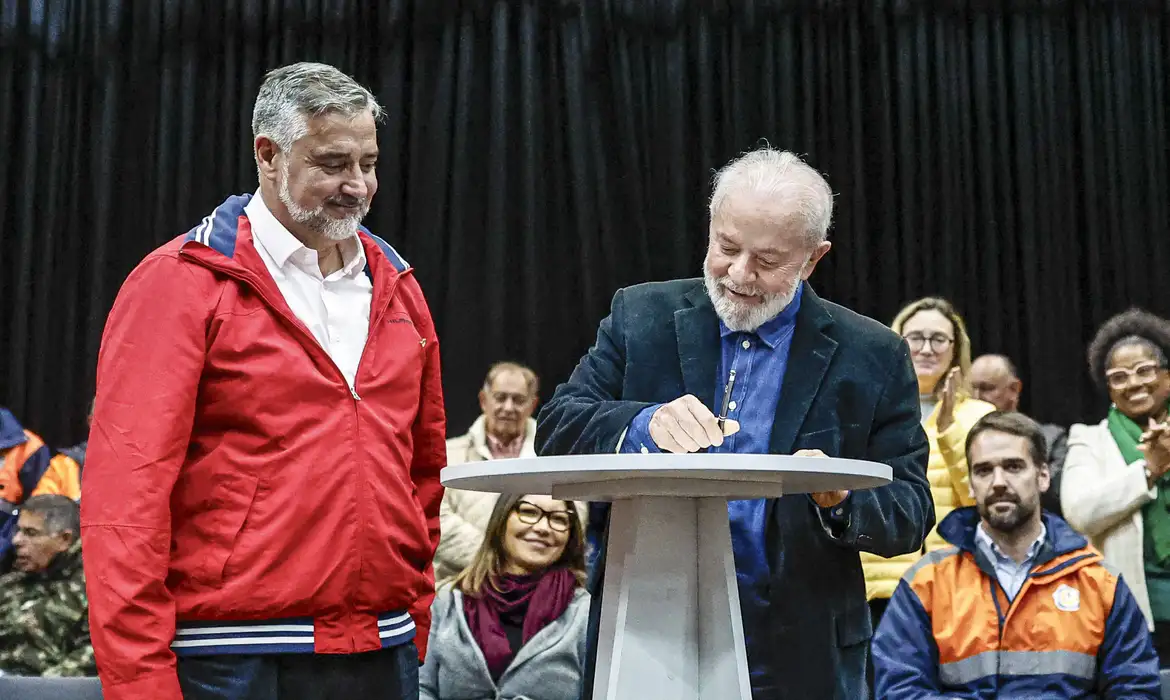 O ato foi assinado em um evento público em São Leopoldo do Sul, na região metropolitana de Porto Alegre. Também foi anunciado o pagamento de um benefício de R$ 5,1 mil para as famílias afetadas pelas enchentes, além de um programa de reconstrução e doação de novas moradias populares.