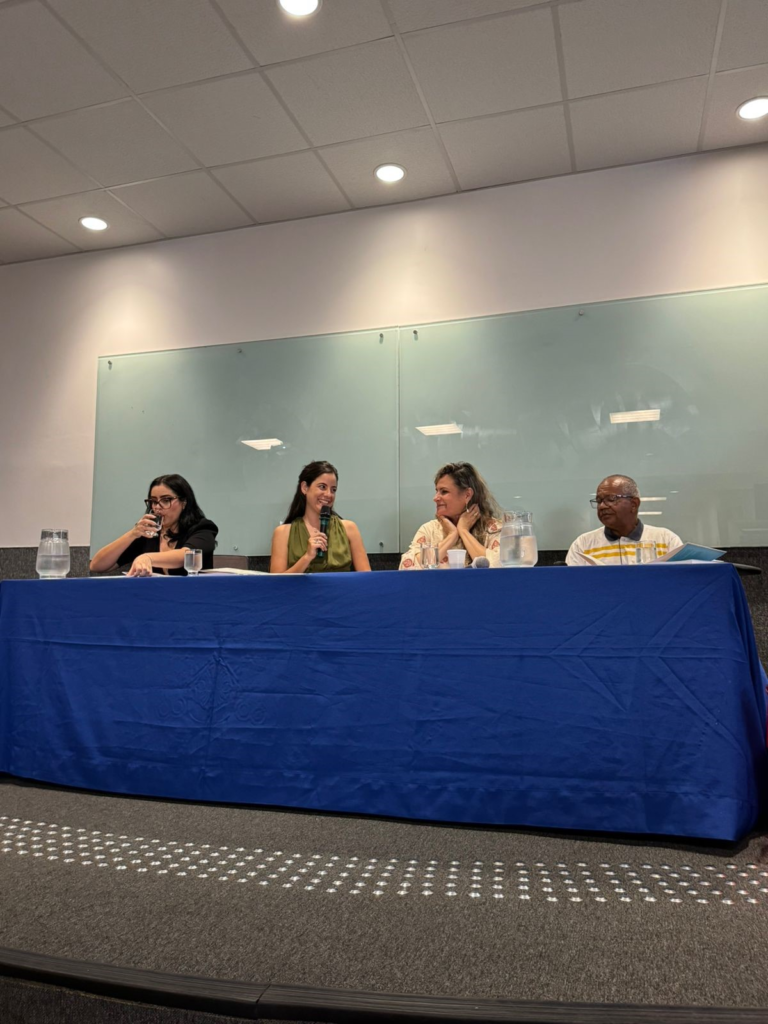 “Quando dizemos aqui de um corpo-território-samba, chamamos aqueles que aprendem dançando, que curam cantando, e que resistem celebrando e afirmando a vida e a liberdade através do corpo. Pensamos aqui no samba, que é sabedoria encarnada nos corpos-territórios que inventam a roda, que é tecnologia de resistência e que atravessou séculos de dor e reinvenção. Usamos dessa categoria corpo-território-samba para pensar como o corpo-território em samba organiza práticas sociais que ensinam cidadania, hospitalidade, democracia, direito à cidade e direito ao próprio corpo, tudo isso como fresta para ousarmos um Direito reencantado”, afirmou a mestranda.