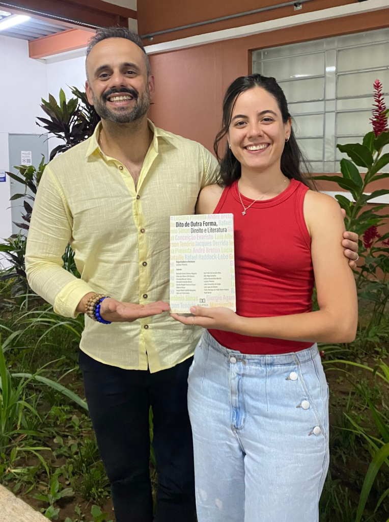 Ao lado do professor Bernardo Nogueira, a mestranda Letícia Vasconcellos Moreira escreveu capítulo para livro do grupo de pesquisa em Direito e Literatura da universidade da capital