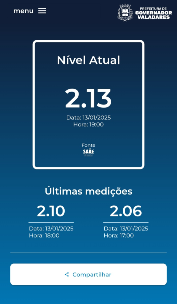 Nível do Rio Doce 13/01/2025 19h