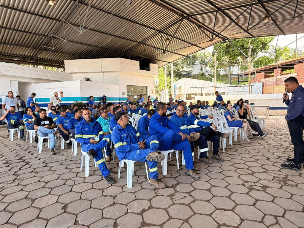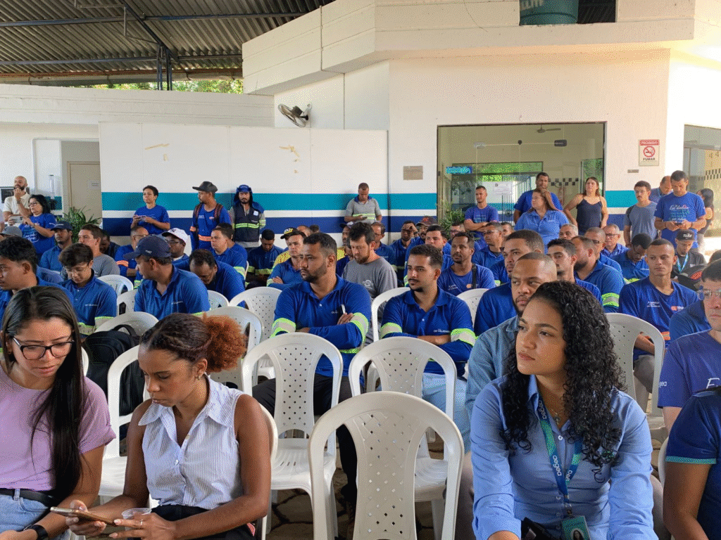 Reunidos no pátio, os trabalhadores ouviram dicas e esclareceram dúvidas