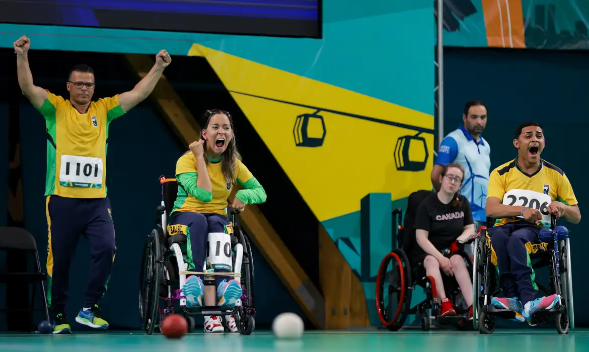 BOCHA EM PARIS - Na disputa por equipes BC1/BC2 (com opção de auxílio e sem auxílio) de bocha, o Brasil derrotou o Canadá por 8 a 2 e conquistou a medalha de ouro. De quebra, a Seleção garantiu vaga nos Jogos Paralímpicos de 2024, em Paris. A pernambucana Andreza Vitória, o potiguar Iuri Saraiva e o cearense Maciel Santos foram os representantes do país no título conquistado na capital chilena. “Estou muito feliz por representar bem o Brasil no Parapan e Paris que nos espere. É um orgulho enorme, com 20 anos de idade, já ser campeão em equipe. Eles (Andreza e Maciel) são muito importantes para mim”, destacou Iuri Saraiva.