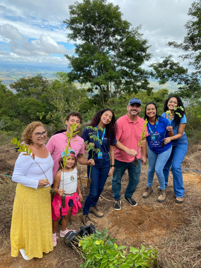 Mudas de espécies nativas de Mata Atlântica foram plantadas na manhã desta sexta-feira (28) no Pico da Ibituruna, em uma ação da Águas de Valadares e parceiros que se uniram para reforçar o ecossistema local e promover o turismo regenerativo na montanha.