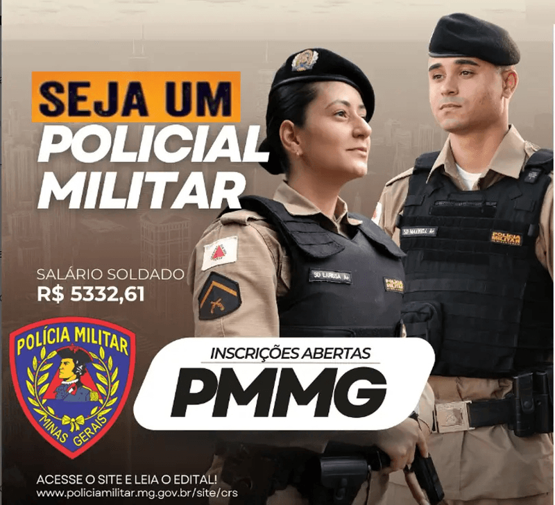 A Polícia Militar de Minas Gerais (PMMG) está com inscrições abertas em todo o estado para o Concurso público para admissão ao Curso de Formação de Soldados (CFSd), para o ano de 2025.
