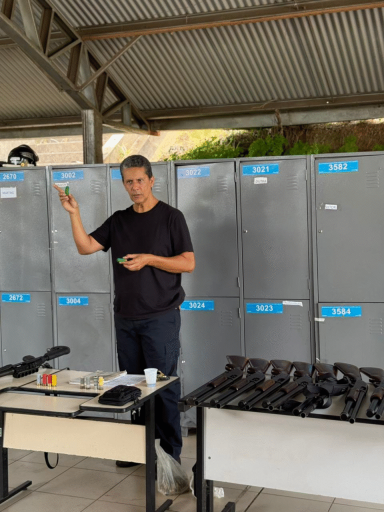 O treinamento foi coordenado pelo tenente veterano da Polícia Militar Doryan Roger e abordou técnicas avançadas, incluindo uso de armamento em viaturas, diferentes tipos de recargas, manuseio seguro, fundamentos de operação e as características das variadas munições empregadas.