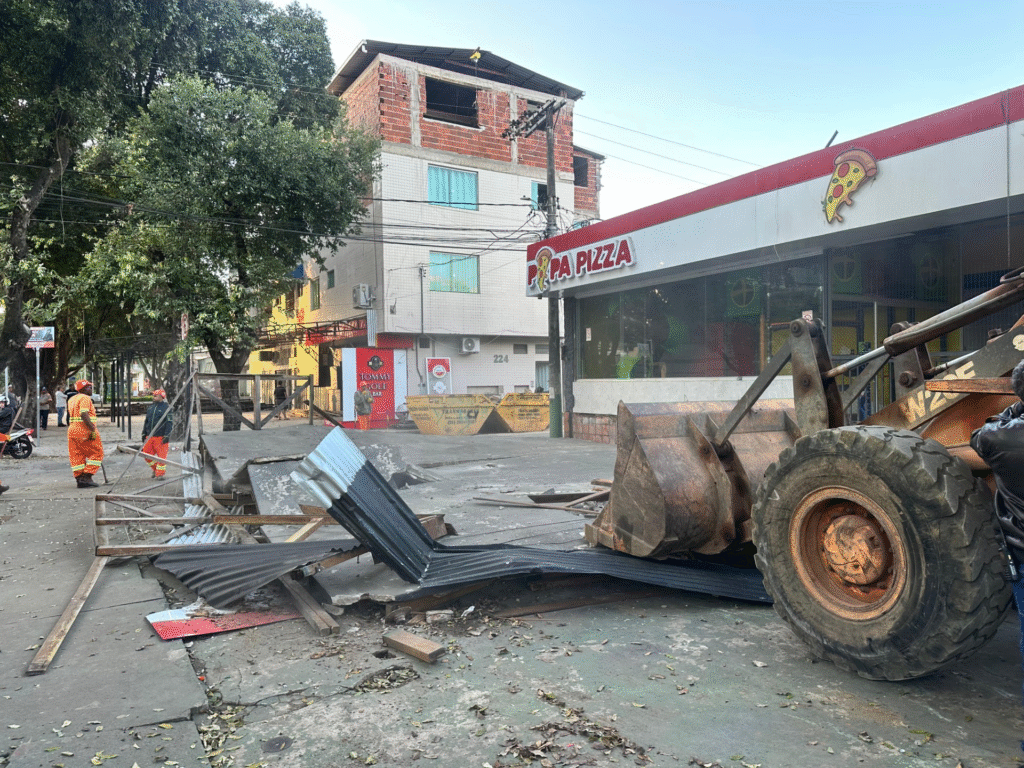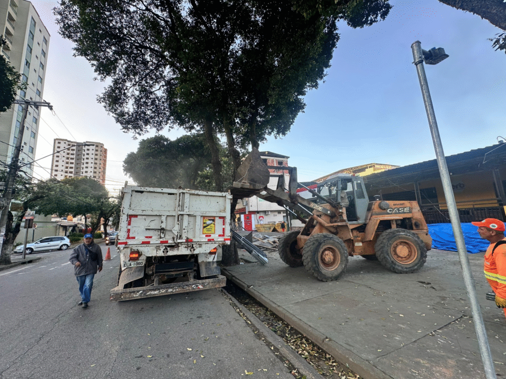 A Prefeitura de Ipatinga realizou nesta terça-feira (15) uma importante operação para retirada de estruturas irregulares instaladas em áreas públicas do bairro Bom Retiro. A ação faz parte de um projeto de reorganização urbana e cumprimento de decisão judicial firmada junto ao Ministério Público, com o objetivo de recuperar áreas públicas, garantir acessibilidade, segurança para pedestres e valorizar a atividade comercial local.