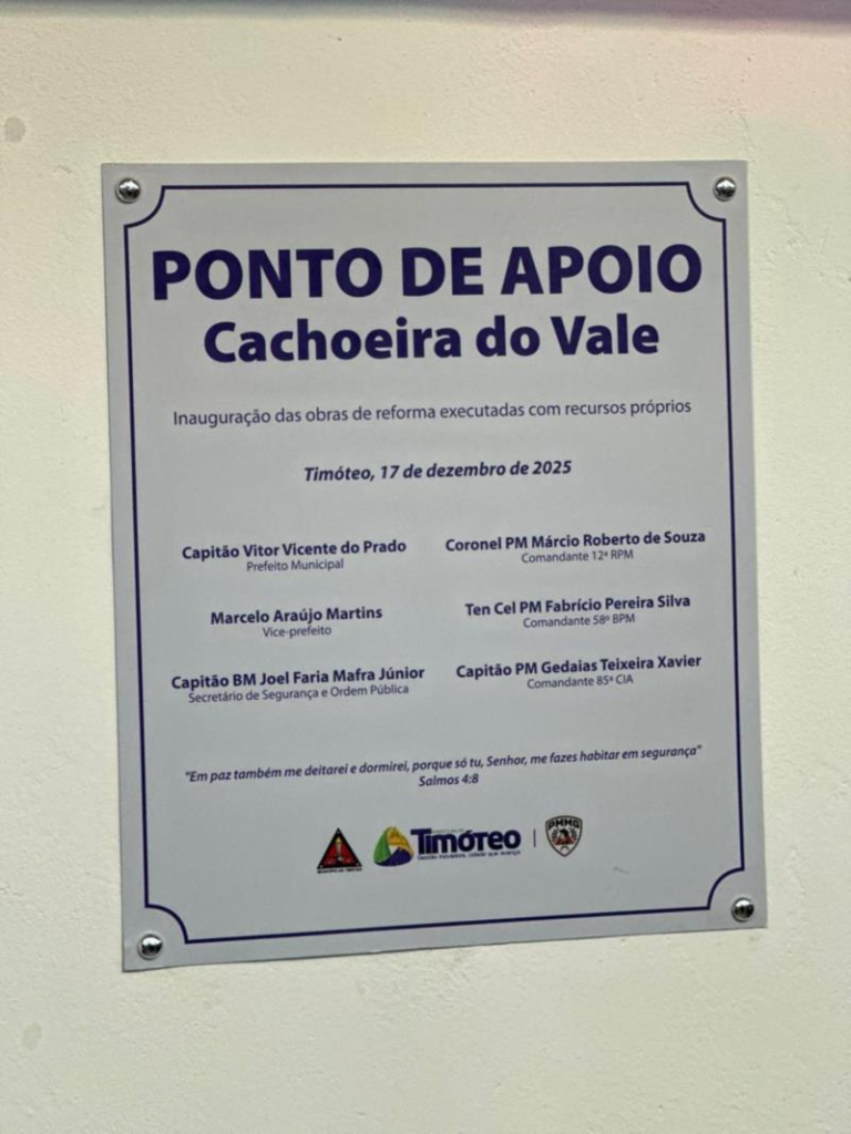 “É preciso reconhecer publicamente esse gesto de sensibilidade da Prefeitura e de todo o secretariado envolvido. A reforma de um ponto de apoio policial é extremamente importante. Embora a Polícia Militar seja um órgão estadual, a Prefeitura de Timóteo mantém conosco três convênios de repasse financeiro. Isso reflete diretamente na melhoria das condições de trabalho da tropa e, consequentemente, em uma prestação de serviço ainda melhor para a comunidade de bem, que é a nossa principal preocupação”, destacou.