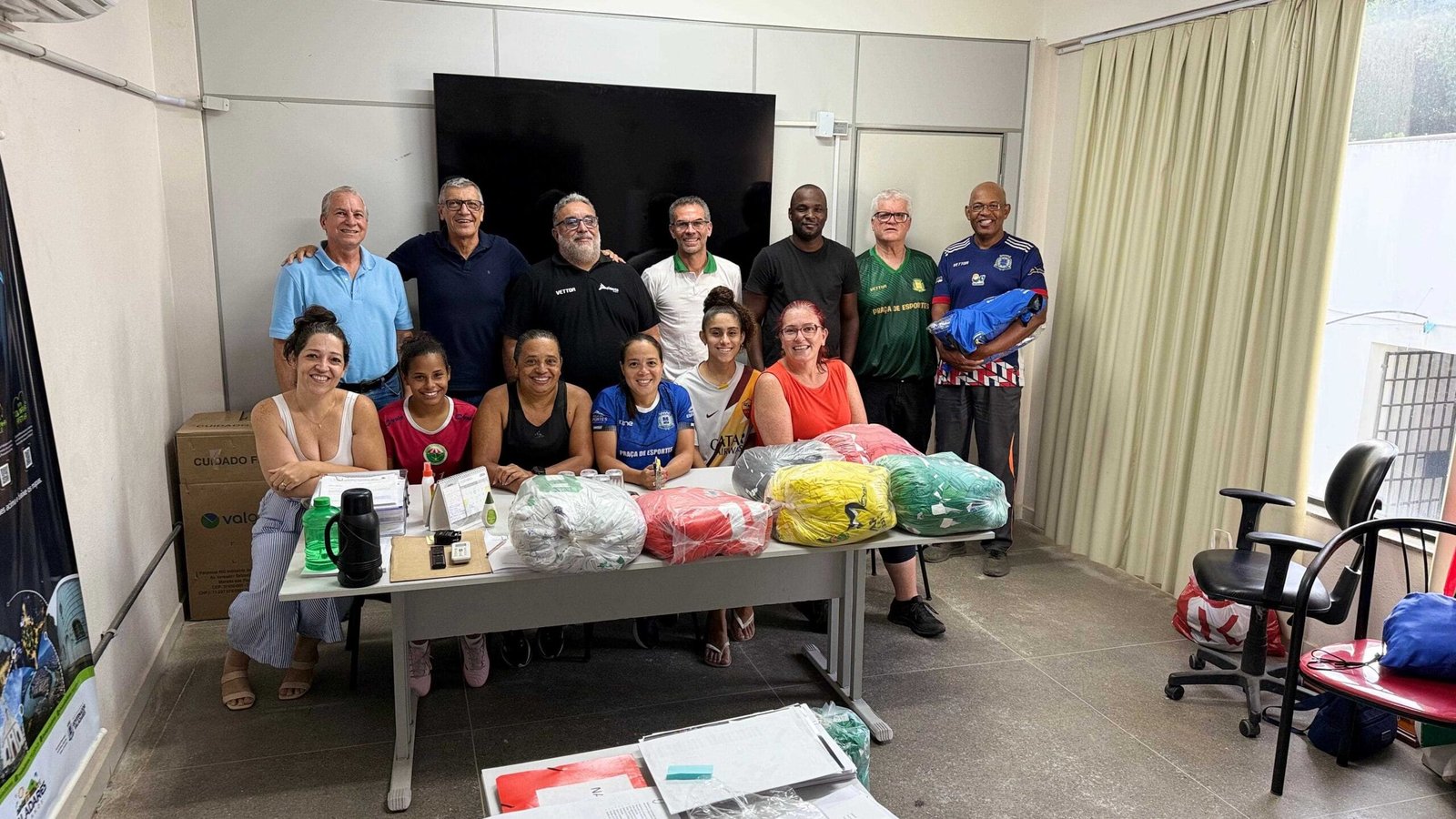 Na ocasião, o Projeto " Meninas Com Brilho Nos Olhos" doou 15 uniformes que serão distribuídos para projetos sociais de nossa cidade. A cerimônia, que aconteceu na Secretaria de Cultura, Esporte, Lazer e Turismo (SMCELT), contou com a participação de autoridades e atletas.