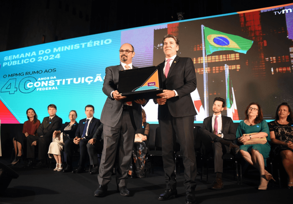 O vice-governador, Mateus Simões, recebeu das mãos do procurador, uma placa. A insígnia também diz respeito ao reconhecimento do que ele considerou uma parceria exitosa.