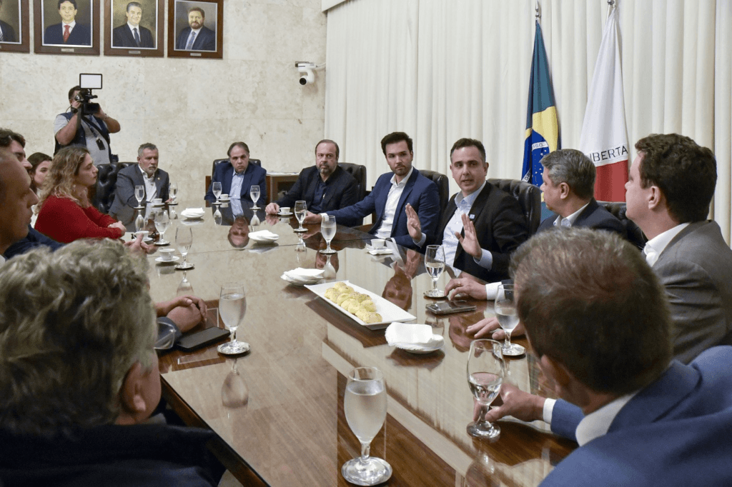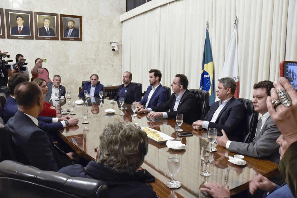 Após a reunião, os líderes dos Parlamentos Estadual e Federal concederam entrevista coletiva, na qual abordaram o andamento das articulações para concretizar a proposição alternativa.