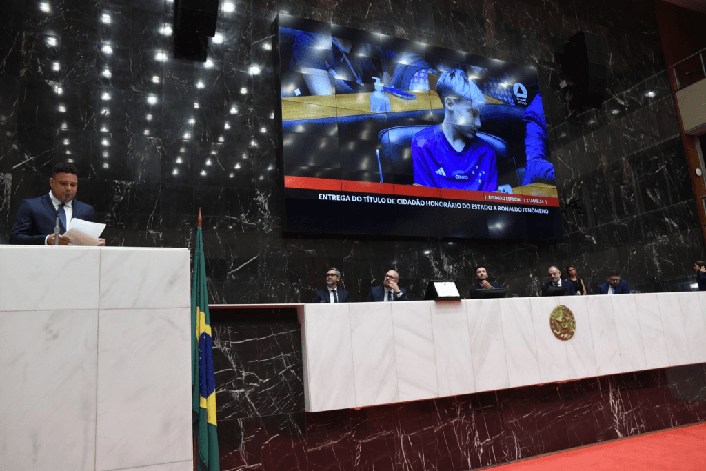 Ex-jogador e agora proprietário do Cruzeiro, Ronaldo Nazário, o “Fenômeno”, recebeu o título de cidadão honorário do Estado nesta quarta-feira (27/3/24), em solenidade no Plenário da Assembleia Legislativa de Minas Gerais (ALMG).