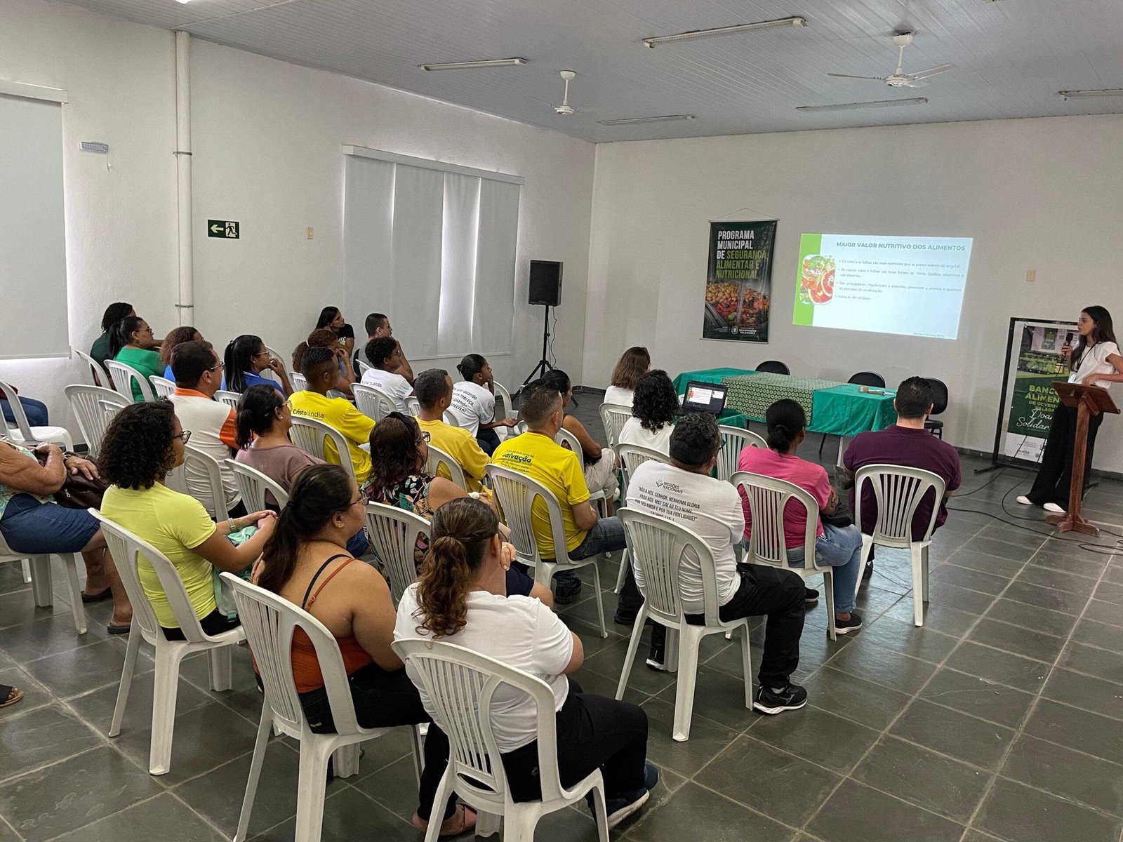 A palestra foi ministrada pela nutricionista da SEMA, Vitória Paes, e por acadêmicas do curso de Nutrição da Universidade Federal de Juiz de Fora (UFJF)/campus Valadares, estagiárias do Departamento de Abastecimento da SEMA, a representantes das 28 entidades sócio assistenciais assistidas pelo Banco de Alimentos de Valadares.