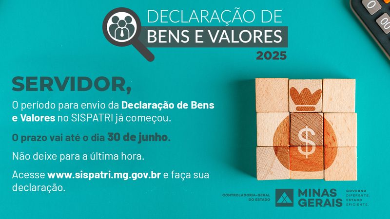 Agentes públicos do Poder Executivo do Estado de Minas Gerais têm até o 30/6 para enviar a declaração de bens e valores referente ao ano de 2024.
