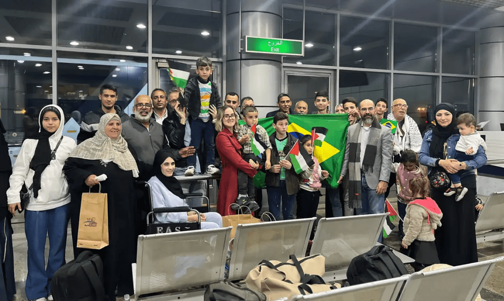 O terceiro grupo de brasileiros e seus parentes que estavam na Faixa da Gaza, no Oriente Médio, quando começou o conflito militar entre Israel e o grupo Hamas deixou a região, via Egito, na tarde desta sexta-feira (22).