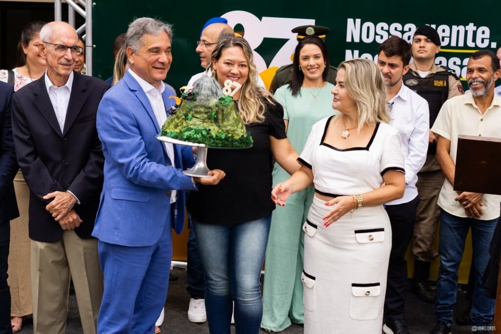 Em um momento simbólico, a confeiteira Lucimara Siqueira presenteou o prefeito e a cidade com um bolo artístico representando o Pico da Ibituruna, um dos maiores símbolos de Governador Valadares.